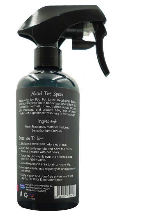 Formulated with pet-friendly ingredients, the spray blocks odour receptors and creates lighter, less noticeable odour molecules, making it safe and comfortable for both pets and humans. Its versatile formulation allows use across multiple surfaces, including litter boxes, floors, fabrics, and furniture.